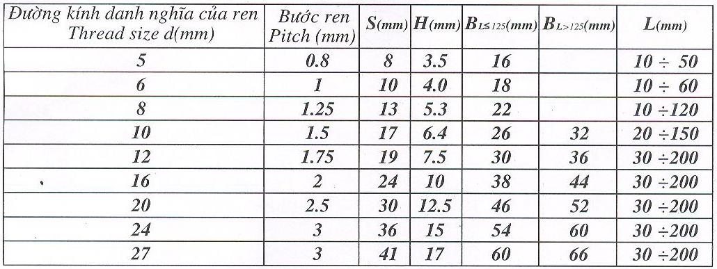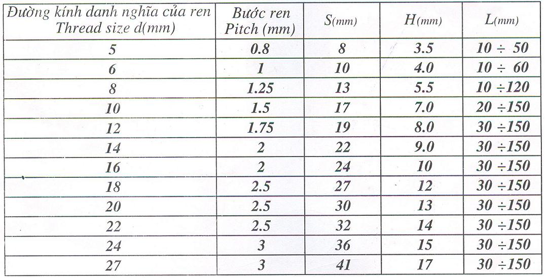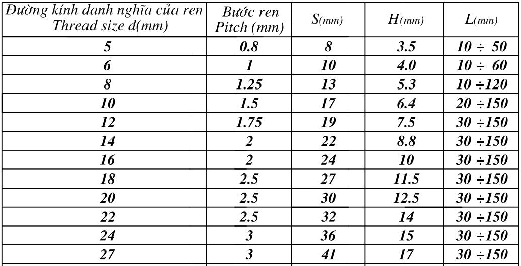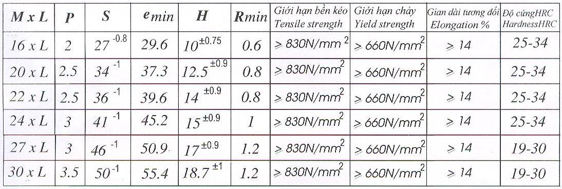 - DIN 931, TCVN 1892 - 76, DIN 601, DIN 558 - DIN 933, ASTM-A325M, ASME B 18.2-1 1996,